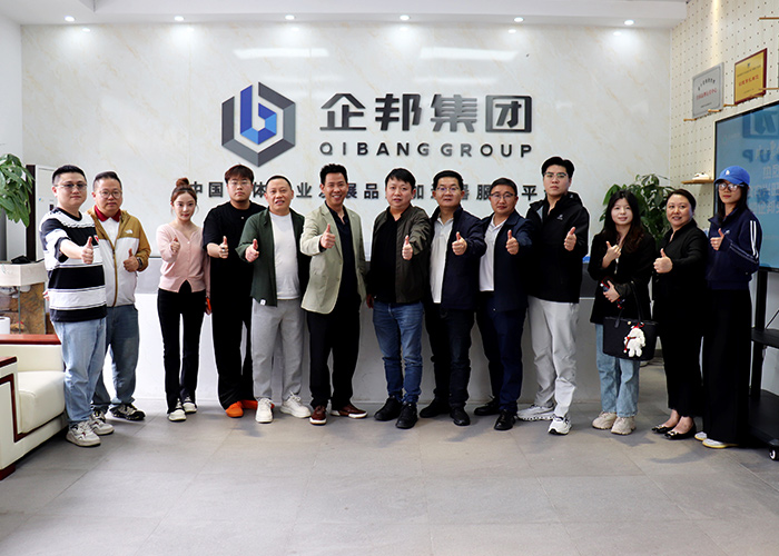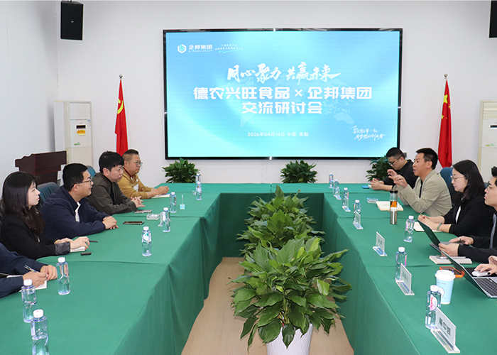 2026年4月14日,贵州德农兴旺食品有限公司董事长于淼、战略负责人陈泽焕率核心业务骨干团队,莅临企邦集团总部开展参访交流活动。企邦集团董事长吴敢忠、CEO何剑松携集团高管团队热情接待,双方围绕实体品牌赋能、资本运作、数字化转型及商业模式创新等核心议题展开深度座谈,共商合作契机、共谋发展新篇。
